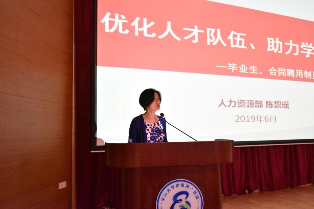 会上,人才发展办公室徐洋主任从我院人才现状、人才招聘目标、人才招聘的优势和劣势、应对方案及工作计划等4个方面进行了工作汇报。 人力资源部陈碧瑶主任以《优化人才队伍,助力学科建设》为题,就毕业生及合同聘用制员工招聘工作进行了汇报。